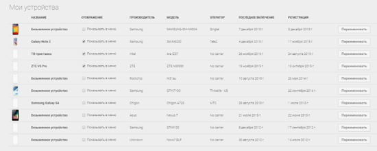 Вы увидите список всех устройств, на которые вы устанавливали что-либо из Google Play со своего аккаунта, и для каждого из них дату, когда оно последний раз было замечено в магазине приложений. Полностью удалить ни одно из них не получится (почему так сделано — непонятно), но можно исключить любое из них из меню, которое появляется в веб-версии Google Play при выборе места установки. Для этого достаточно просто снять галочку с устройства.