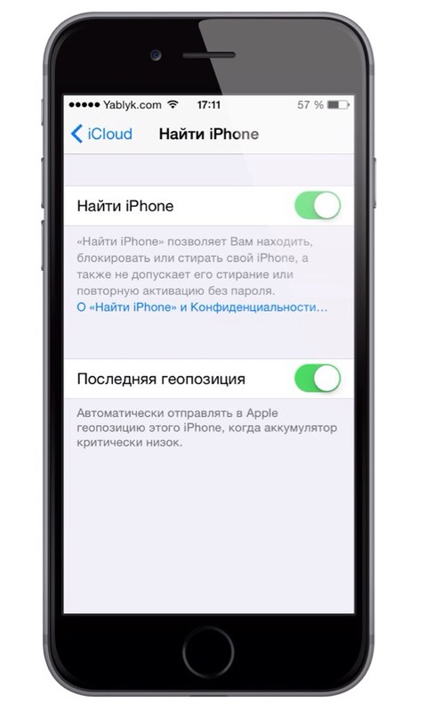 Не стоит забывать об активации функции «Найти iPhone». Убедитесь, что функция удаленного поиска включена в настройках iOS —> iCloud;