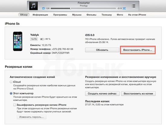 Как удалить настройки и персональные данные с iPhone и iPad при помощи iTunes