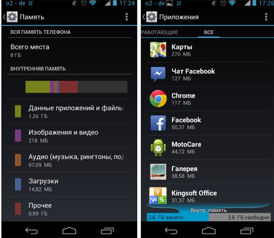 Для того, чтобы узнать, сколько у вас свободной памяти и на что расходуется занятая в данный момент память, необходимо зайти в настройки смартфона, в разделе Память вы найдете всю подробную информацию.