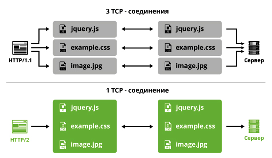 HTTP/2 загружает все элементы страницы через одно соединение.