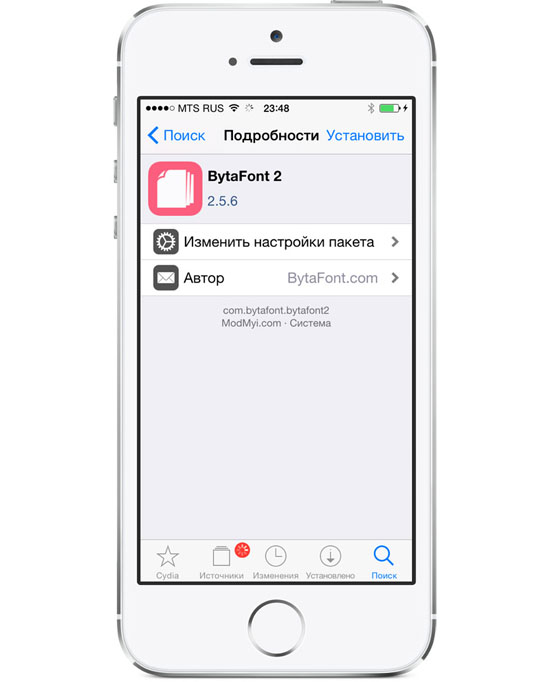 Шаг 1: Откройте Cydia, перейдите на вкладку «Поиск». Найдите бесплатное приложение BytaFont 2. Установите приложение.