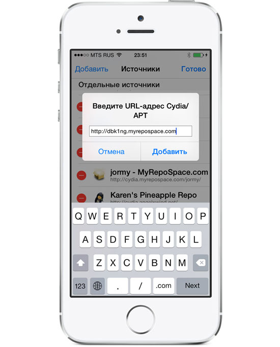 Шаг 2: Перейдите на вкладку «Источники», нажмите «Правка» > «Добавить» и укажите адрес репозитория http://dbk1ng.myrepospace.com. Кликните «Добавить».