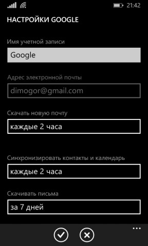 4. Настройте период синхронизации для подключенных учетных записей. Для этого перейдите в раздел “Настройки” - “Почта + учетные записи” и выберите один из своих аккаунтов. В окне настроек вы сможете изменить период обновления данных, а также выбрать какой контент требуется синхронизировать. Например, если вы не пользуетесь календарем, то можете отключить его постоянное обновление.