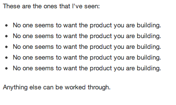 То, на что стоит обратить внимание в первую очередь, активно обсудили на Кворе. Бизнесмен Уильям Пьетри выделил ТОП-10 признаков загибающегося стартапа: