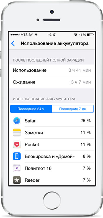 Первое, что необходимо сделать — вычислить наиболее прожорливые приложения. Даже частичное прекращение использования некоторых из них положительно скажется на продолжительности автономной работы iOS-устройства.