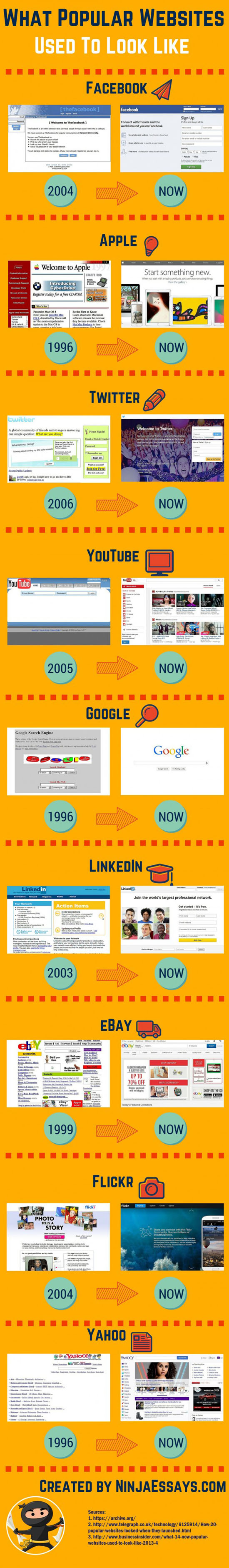 Роберт Моррис с NinjaEssays собрал скриншоты Google, YouTube, Twitter и других самых известных ресурсов в первые дни работы и сравнил их с нынешним интерфейсом.