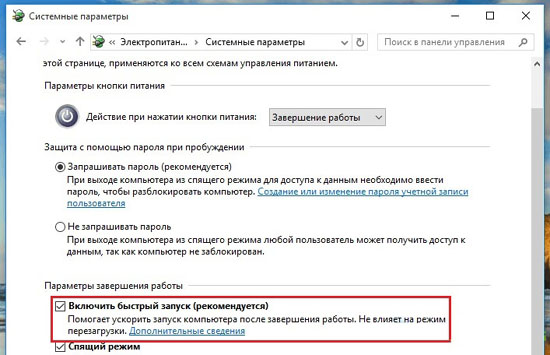 Шаг 1: Windows 10 активирует быструю загрузку и выключение посредством специальных параметров, которые можно найти в Настройках электропитания. Активировать быстрый старт можно из Панели управления, раздел Настройки электропитания.