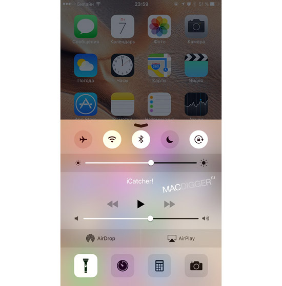 Шаг 1: Свайпом вверх откройте Пункт управления – стандартный элемент интерфейса последних редакций iOS.