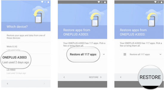 При сбросе или активации нового устройства, после ввода Google-аккаунта Android предложит восстановить устройство из резервной копии.