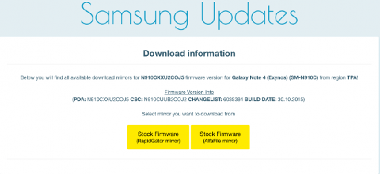 На следующей странице должен появится список прошивок для этой модели, отсортированный по дате, то есть самые свежие вверху. Находим прошивку для вашего региона (Россия=SER, Украина=SEK), а затем переходим к скачиванию, нажав “Download” напротив выбранного программного обеспечения. Теперь необходимо кликнуть по одной из желтых кнопок на странице.