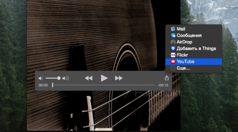 Для сохранения видео нажмите Файл - Сохранить, либо же используйте сочетание клавиш «Command+S». Кроме этого, существует возможность сразу же поделиться роликом, даже не сохраняя его на своём компьютере. Выбор доступных сервисов очень велик, в том числе присутствует YouTube, Facebook, Vimeo, Twitter и многое другое.