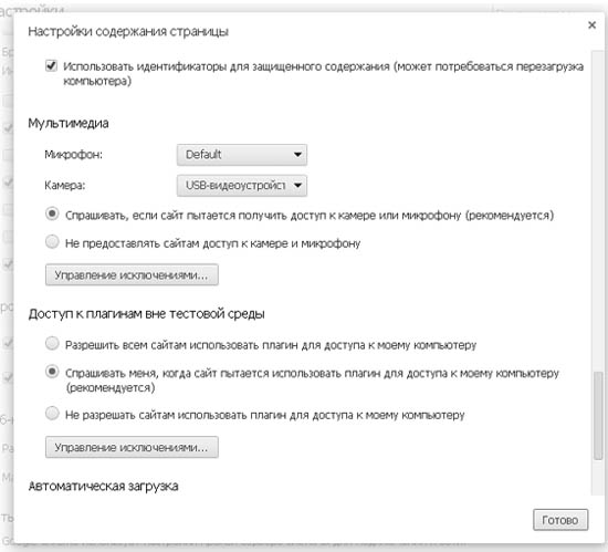 4 (по желанию). Зайти в настройки содержания страницы и указать пункт «Не предоставлять сайтам доступ к камере и микрофону» вместо стандартного «Спрашивать, если сайт пытается получить доступ к камере или микрофону».