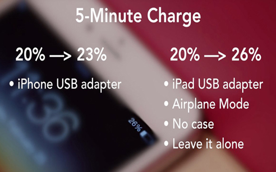 Мощность стандартного зарядного устройства для iPhone — 5 Вт, его аналога для iPad — 12 Вт. В результате зарядка для планшета заряжает iPhone 6 Plus на 40% быстрее. Никаких фокусов, только физика.