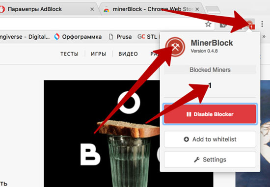 Еще одно расширение, дублирующее функциональность No Coin. minerBlock (Скачать) также доступен для браузера Google Chrome и способен предупредить о наличии вредоносного майнера на сайте, заблокировав его активность.