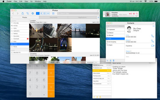 OS X 10.10, вероятно, станет главной темой WWDC 2014. Новая редакция настольной ОС должна принести существенное обновление для внешнего вида операционной системы. Преображение не будет таким же радикальным, как iOS 7, однако в OS X появится больше плоских элементов, эффекты прозрачности и матового стекла, белые текстуры вместо нынешних скевоморфизмских иконок.