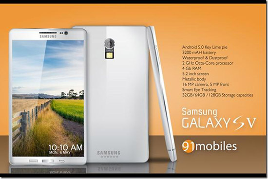 Этот концепт был представлен на сайте 91Mobiles, дизайнерам которого Galaxy S5 представился водо- и пылезащищенным, с более квадратными концами, нежели у предыдущих моделей, узкими и длинными аппаратными кнопками и облаченным в металлический корпус.