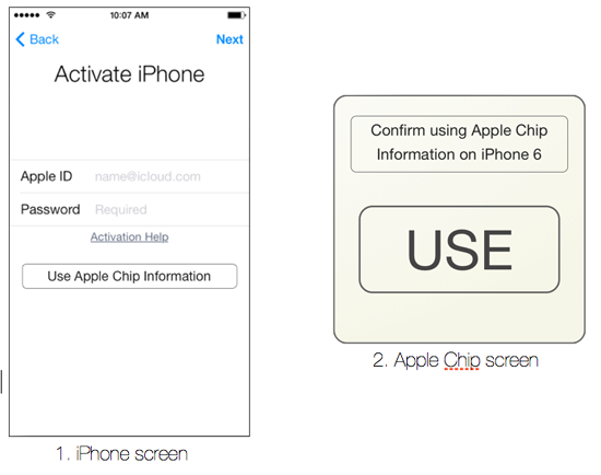 Не будет необходимости вводить почтовый ящик, пароль, указывать язык, геолокацию, пароль от Wi-Fi. Нажимая «USE» на Apple Сhip, вы получали бы полностью активированный iPhone уже через 10 секунд.