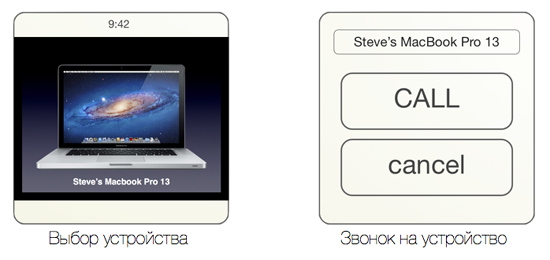 Звонки на устройства могут быть нужны, когда вы хотите связаться со своим сотрудником. Например, с вашим дизайнером или разработчиком, который работает в вашей команде. Вы не звоните на телефон, потому что он может быть на переговорах, в ванной, за рулем, с друзьями. И находясь далеко от компьютера, он мало чем сможет вам помочь. А звоните вы ему по делу. А раз по делу, то звонки идут только на его рабочий компьютер. Вы выбираете среди миниатюр его рабочий компьютер и звоните на него.