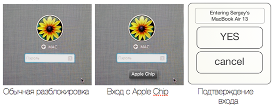 Используя Apple Chip, вы сможете легко разблокировать ваш Mac одним нажатием. Вы можете по прежнему вводить пароль либо нажать на экране вашего Mac иконку Apple Chip. Apple Chip разблокирует ваш Mac в мгновение ока.
