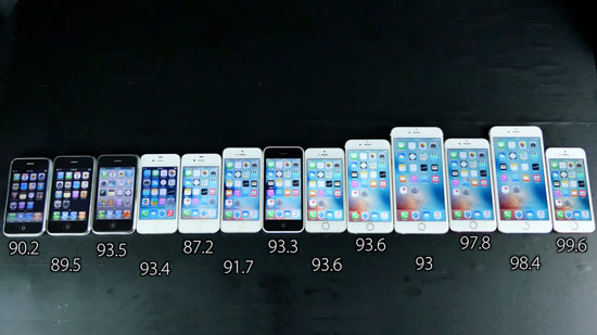 На столе для экспериментов оказались следующие устройства: iPhone 2G, iPhone 3G, iPhone 3GS, iPhone 4, iPhone 4s, iPhone 5, iPhone 5c, iPhone 5s, iPhone 6, iPhone 6 Plus, iPhone 6s, iPhone 6s Plus и iPhone SE. На каждом смартфоне одновременно была выполнена команда включения, что дало понять, какой из всех iPhone обладает лучшим показателем быстродействия.