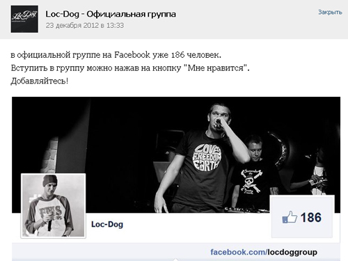 В группе Loc-Dog «ВКонтакте», в которой на момент написания статьи было 140 тыс. участников, рекламируют «дохлое» сообщество в Facebook