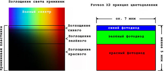 Принцип цветоделения матриц вроде Foveon X3