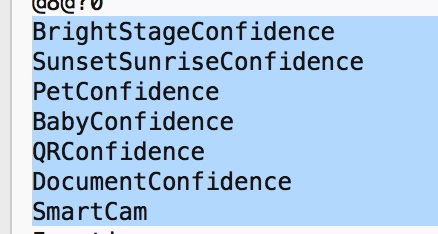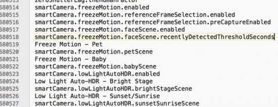 Некоторые из них даже упоминаются в коде: FigSmartcamScene. (Fireworks, Foliage, Pet, BrightStage, Sport, Sky, Snow, Sunset/Sunrise). Камера iPhone сможет обнаружить сцену, а затем установить идеальную экспозицию, скорость затвора и другие параметры для лучшей картинки.