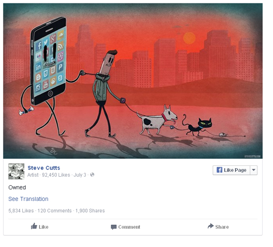 Вскоре после статьи в Bored Panda карикатуры Стива Каттса широко распространились в социальных сетях, а подписчиками его страницы в Facebook стали почти 90 тысяч человек. В комментариях к верхней записи иллюстратору предлагают начать выпуск футболок с его работами.