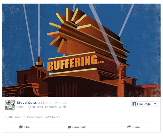 Почти 1,4 миллиона просмотров за четыре дня набрала на сайте Bored Panda статья, посвященная творчеству иллюстратора Стива Каттса. "Лайк" материалу поставили почти 200 тысяч человек.