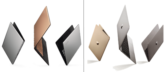 Справа — изображение, которое широко использовалось в рекламе MacBook 2015. Оно до сих пор доступно на сайте Apple как иконка раздела «Сравнение ноутбуков Mac».