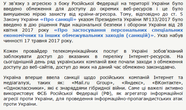 "Департамент киберполиции Национальной полиции Украины призывает граждан сообщать о фактах невыполнения провайдерами Указа Президента Украины №133/2017", - сообщается на сайте Нацполици.