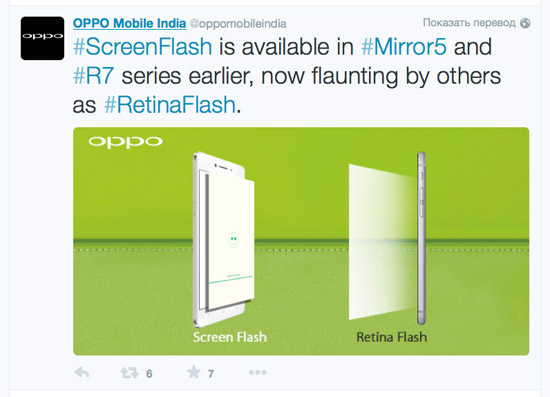 Аналогичная функциональность под названием Screen Flash реализована в смартфонах Oppo R7, Oppo R7 Plus, Oppo R7 Lite и Oppo Mirror 5. Компания не предъявила судебных претензий Apple, но обратила внимание общественности на этот факт через Twitter.