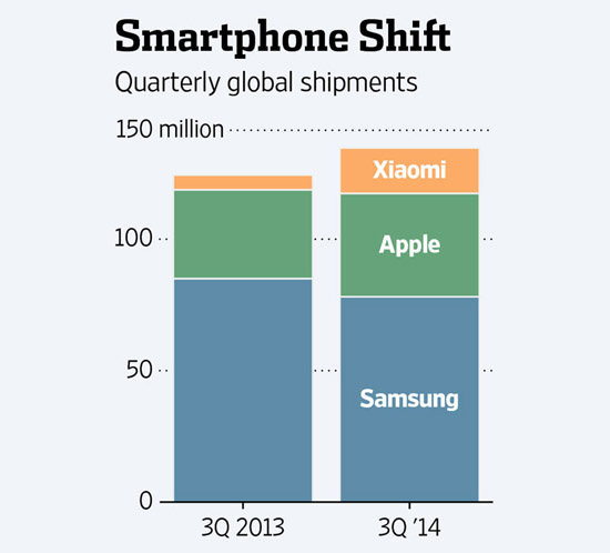 Самый дорогой стартап в мире, китайский производитель Xiaomi, объявил, что за прошлый год продажи удалось нарастить в три с лишним раза. За 2014 год было продано более 61 млн смартфонов, что обеспечило выручку в размере $11,97 млрд. В планах у вендора превзойти по объемам продаж компанию Apple.