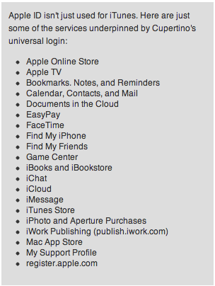 Наши коллеги с The Verge в своем материале очень верно подметили одну вещь: мы не осознаем весь объем и важность той информации, которую передаем под власть Apple. И речь здесь идет вовсе не о данных кредитной карты с тысячами долларов, которую многие (необдуманно) привязывают к своей учетной записи. Вот лишь часть сервисов, управляемых вашим Apple ID.