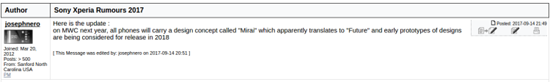 Данное сообщение основано на теме форума ресурса esato.com, в которой пользователь josephnero в контексте слухов 2017 года о Sony Xperia пишет: