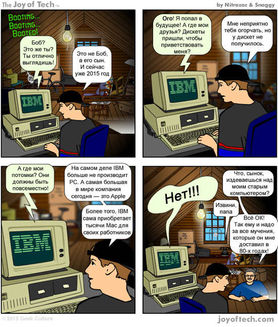 Самый первый IBM PC был откровенно ужасным. Этот громоздкий компьютер отличался крайне низкой производительностью, не имел цветного экрана и хорошего ПО, да и внешний вид его не впечатлял. Однако он превосходил Apple II по двум критериям: громкое имя IBM и более доступная стоимость. Этого оказалось вполне достаточно для победы над компьютерами Apple. Однако время всё расставило по своим местам.