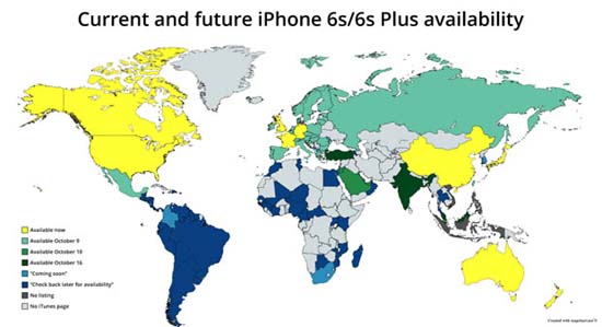 Подборку дат запуска сделало издание Cult of Mac, проанализировав сайты компании в разных регионах. Журналисты даже создали карту мира, на которой указали даты запсука продаж iPhone 6s и 6s Plus в каждой стране.