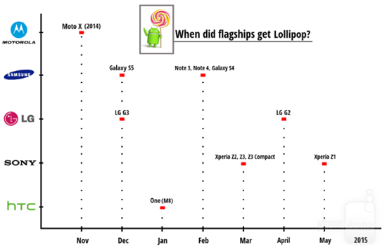 Что касается остальных производителей, самой «отсталой» можно назвать только лишь Sony, которая абсолютно не торопится обновлять свои устройства, которые получили Lollipop только в марте этого года.