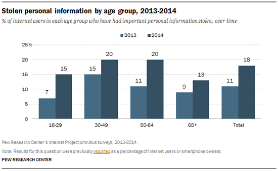 Аналитики компании The Pew Research Center сообщают, что за последние полгода количество краж личных данных американских пользователей увеличилось с 11% до 18%.