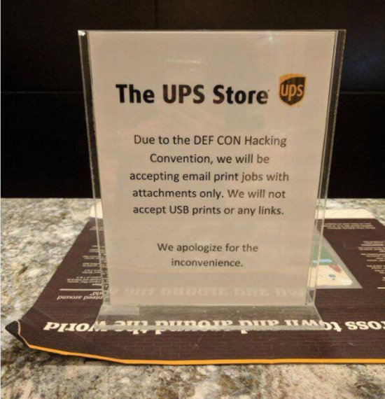 Развлекательный комплекс Caesars Palace, где состоится DEF CON, отключил все компьютеры в бизнес-центре, всерьёз ожидая, что на него будут совершены хакерские атаки. Подразделение почтовой компании UPS в Лас-Вегасе тоже опасается нападения хакеров. До конца июля оно принимает только письма с вложениями и отказывается вносить данные об отправлениях с флешек и веб-ссылок.