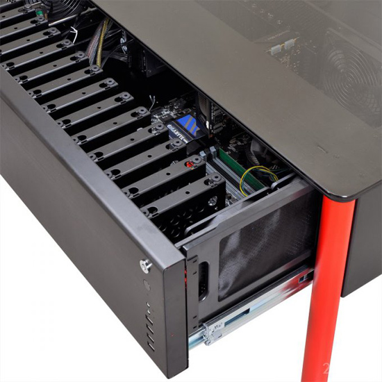 Тайваньская компания Lian Li Industrial занимается разработкой и производством алюминиевых корпусов для персональных компьютеров. Однако, последний прототип меньше всего напоминает привычный "ящик", спрятанный под столом. Дело в том, что его создатели решили отказаться от более-менее стандартных формфакторов и представили весьма интересное решение, увеличив размер системного блока до размеров столешницы и поставив его на ножки. Получился отличный, а главное, компактный компьютерный стол DK01. Особенности конструкции обеспечивают удобство доступа ко всем внутренним модулям и хорошее охлаждение системы, а так же возможность установки специального крепления для 1-2 мониторов. Разработчики обещают, что такой стол скоро поступит в продажу, но конкретных сроков и цену не называют.