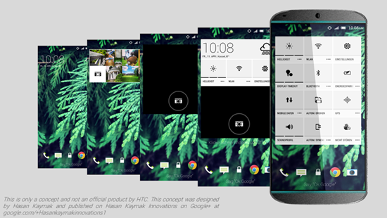 Есть ещё один концепт HTC One M9 на который хотелось бы обратить внимание. Эту модель создал Хасан Каймак (Hasan Kaymak). Он немного отличается от предыдущего варианта, т.к. автор пожертвовал BoomSound стереодинамиками в пользу размера экрана.Â