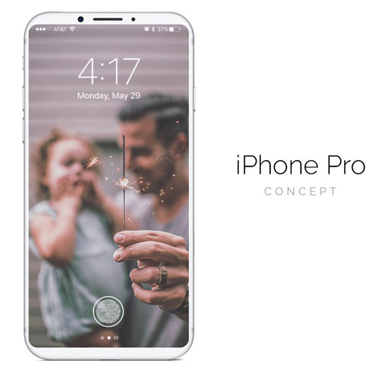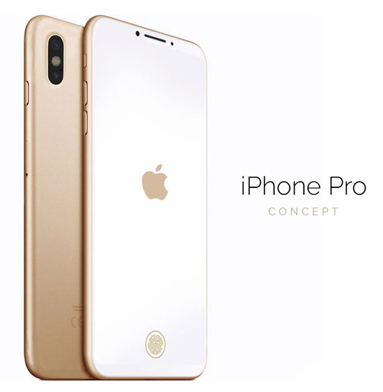 Изображения iPhone Pro опубликованы на странице дизайнера в Twitter. За основу взят дизайн iPhone 7 Plus, но наибольший интерес тут вызывает дисплей, который простирается во всю фронтальную панель смартфона и содержит встроенный сканер отпечатков пальцев. В этом принципиальное отличие от iPhone 7 Plus. С обратной стороны iPhone Pro повторяет облик 5,5-дюймового флагмана за исключением вертикально расположенной камеры.