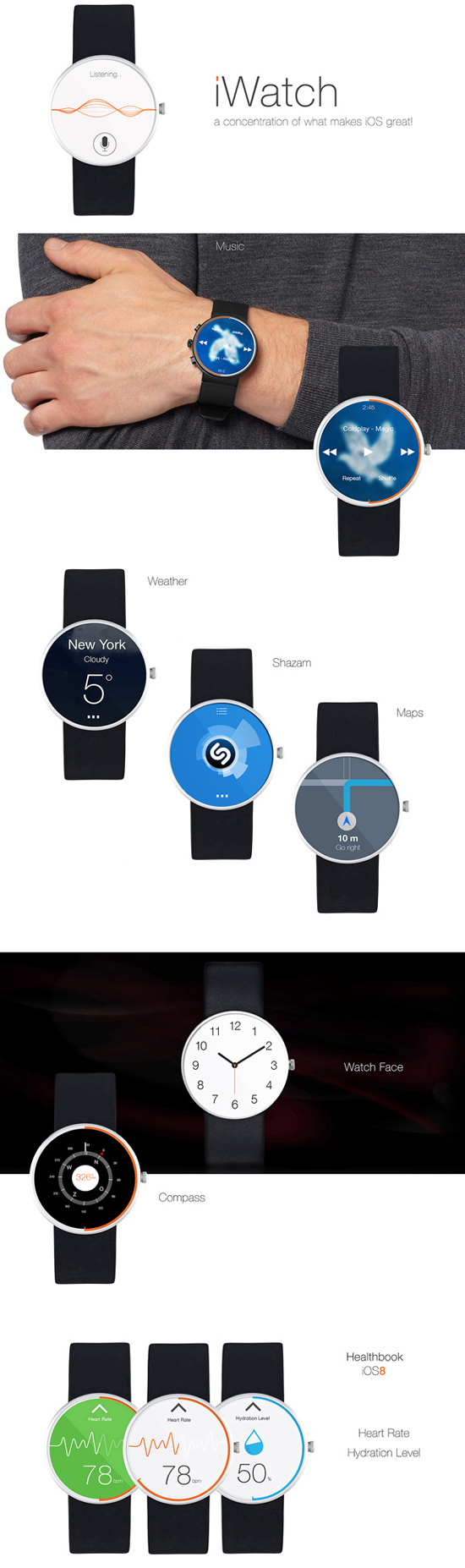 По информации многочисленных источников, но только не самого производителя, в ближайшем будущем Apple выпустит на рынок «умные» часы собственного производства. Голландский дизайнер Нермин Хасановик предложил свое видение интерфейса грядущего устройства.