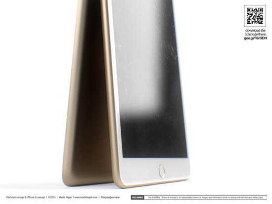 Дизайнер Мартин Хайек, прославившийся концептами и рендерами новых устройств Apple, решил пофантазировать о внешнем виде iPad mini третьего поколения. Он думает, что в Купертино в этом году могут изменить привычный дизайн устройства, сделав его похожим на iPhone 6. Кроме того, новый компактный планшет мог бы продаваться в корпусе из золотистого алюминия и получит сканер отпечатков пальцев Touch ID. Надо признать, концепт выглядит отлично, и такое обновление непременно заставило бы многих владельцев устройств первого и второго поколения отправиться в магазины за новинкой.