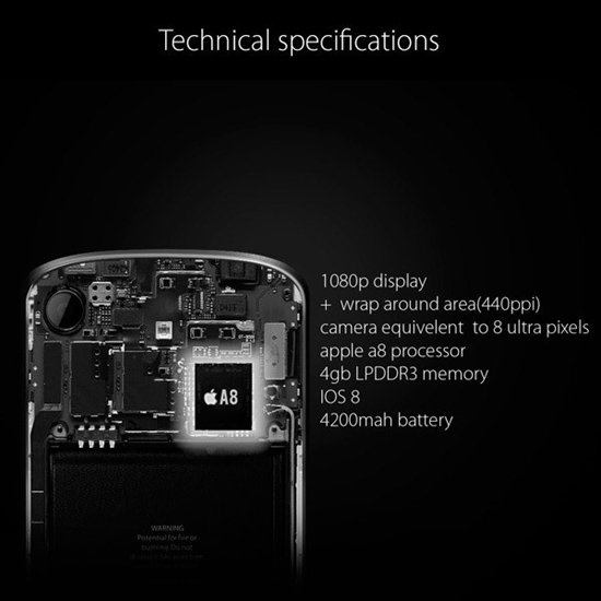 Концепт iPhone Pro получил дисплей с разрешением Full HD, края которого загибаются на боковые стороны устройства, «ультрапиксельную» камеру (вероятно, имеется в виду технология HTC), 64-битный процессор Apple A8, 4 ГБ оперативной памяти и батарею емкостью 4200 мАч. По каким причинам Муйунда ограничился таким объемом аккумулятора, неизвестно.