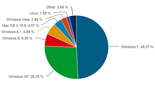 В тоже время Net Applications приводит более детализированную информацию, согласно которой на данный момент Windows XP контролирует 26% рынка и занимает почетное второе место, тогда как лидерство удерживает Windows 7 - 49%. Что касается семейства Windows 8, то на его долю приходится 16,1% рынка. Настольная платформа Apple OS X контролирует – 4%, Vista – 3%, Linux – 1,6%.