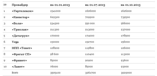 Крупнейшие интернет-провайдеры по итогам трех кварталов 2013 года