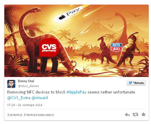 Начиная со вчерашнего дня, аптечные сети CVS и Rite Aid в США негласно запретили покупателям использовать любые методы NFC-платежей. Под ограничение попала не только недавно запущенная система Apple Pay, но и похожее решение от Google под названием Wallet. Темпы использования последней приближались к статистической погрешности, поэтому причина явно кроется в Apple Pay. Руководство обеих аптек никак не прокомментировало ситуацию, но их посетители уже столкнулись с неожиданным решением. Ещё недавно всё функционировало нормально.